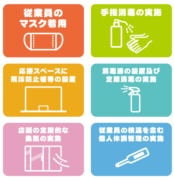 お客様におかれましてもマスク着用、手指消毒等にご協力くださいますようお願い申し上げます。